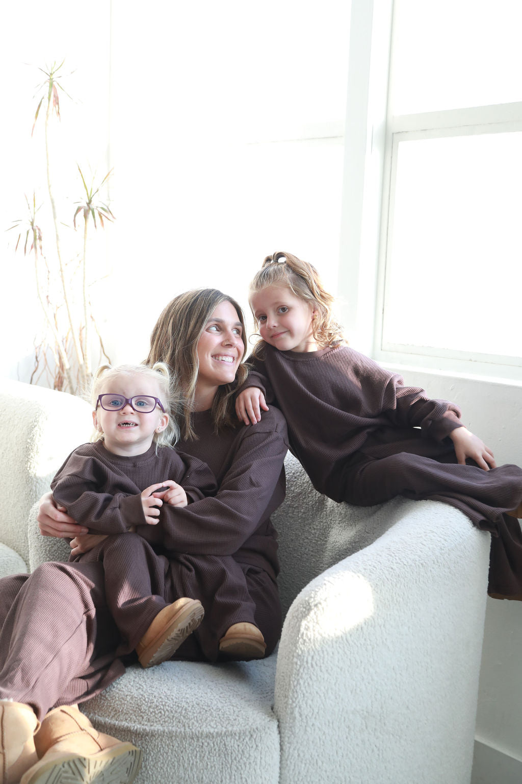 Cozy meets cute in the Delaney Set — a 100% cotton waffle knit duo designed exclusively for mama and mini to match in effortless style. Soft, breathable, and delightfully textured, this set brings warmth and comfort to your cozy mornings, lazy weekends, or playful afternoons. With a relaxed fit and timeless design, it’s made for creating sweet memories side by side.