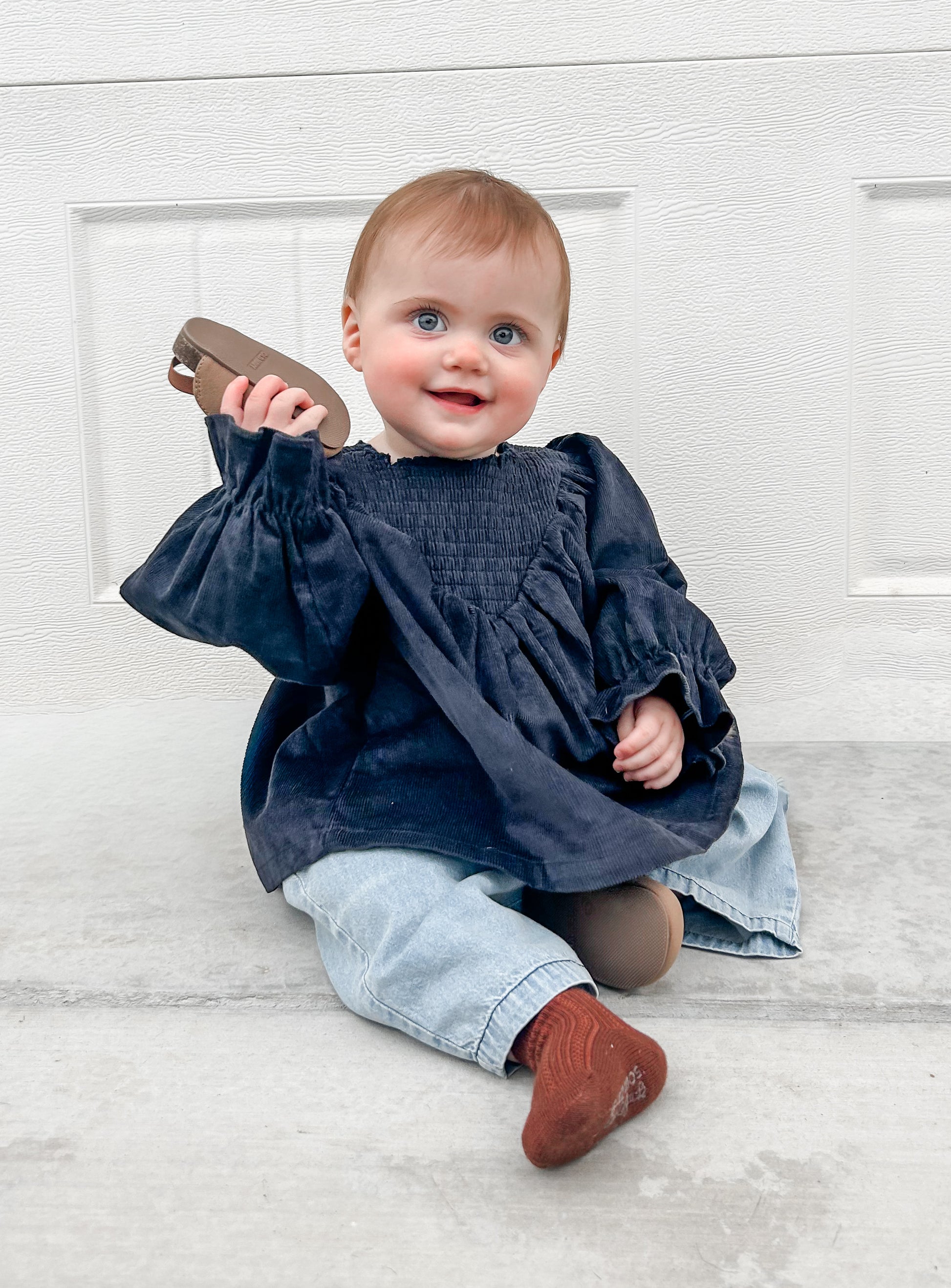 Soft, timeless, and effortlessly charming, the Éloise Top is crafted from plush corduroy with loose, flowy sleeves and subtle detailing along the neckline and cuffs for a delicate, elevated touch. Its relaxed silhouette makes it perfect for layering over tees or pairing with skirts and jeans, bringing comfort and sweet sophistication to your little one’s wardrobe.