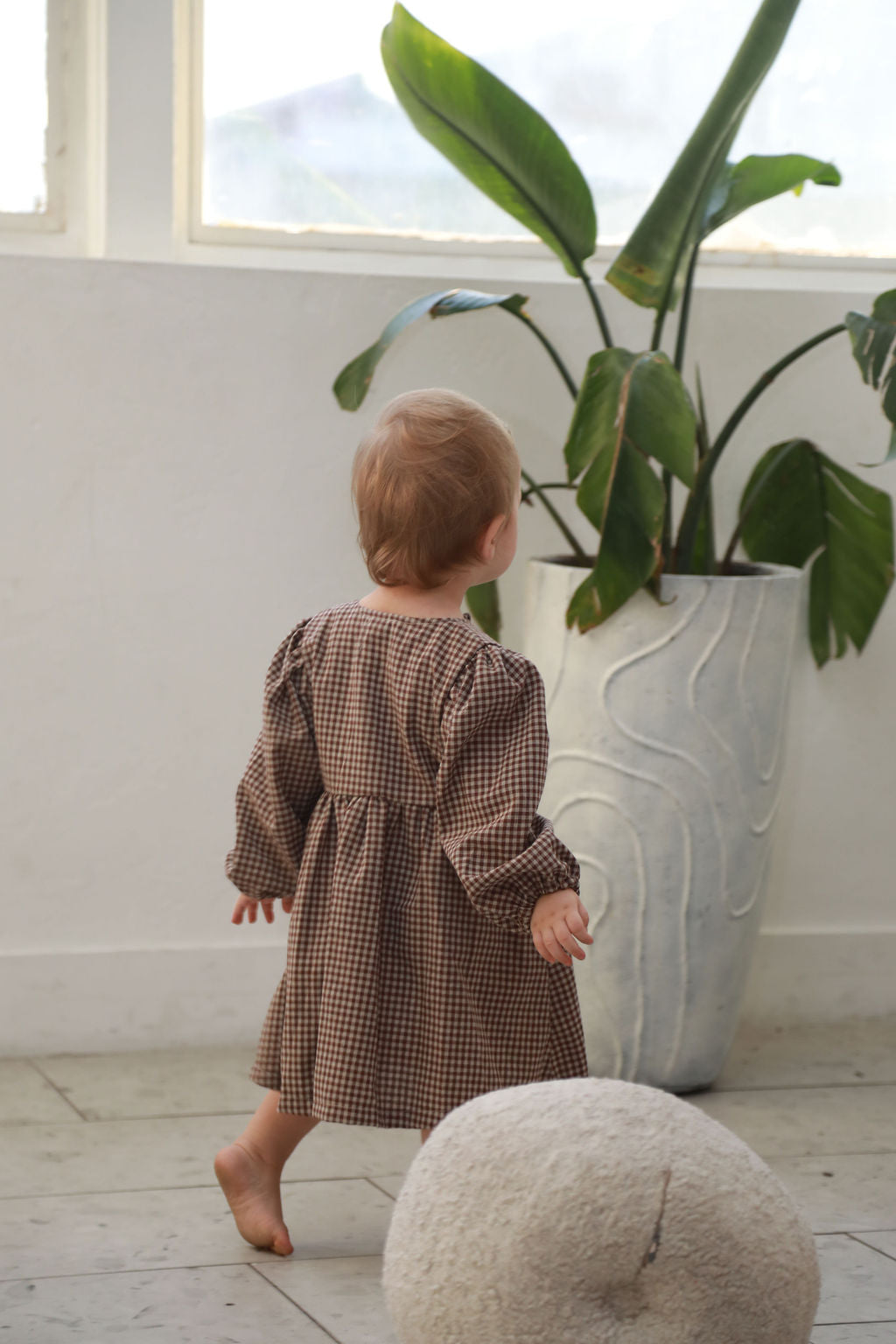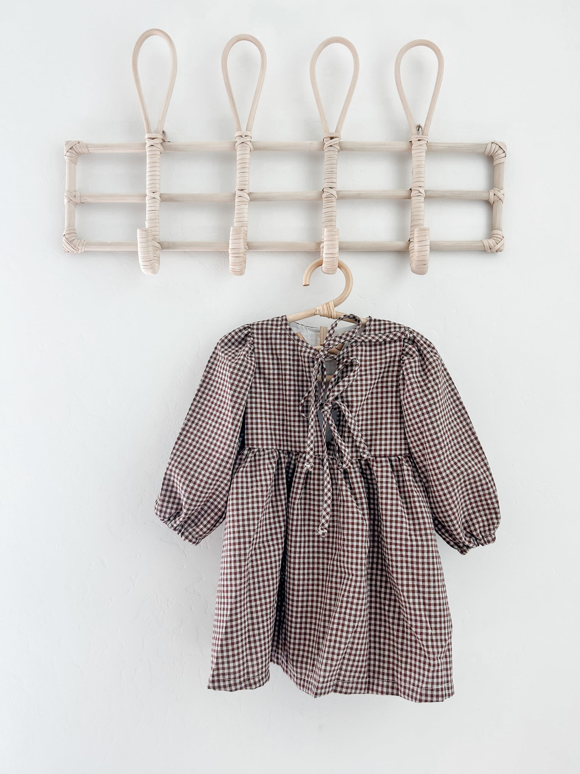 • Dark brown gingham fabric with a soft, breathable feel