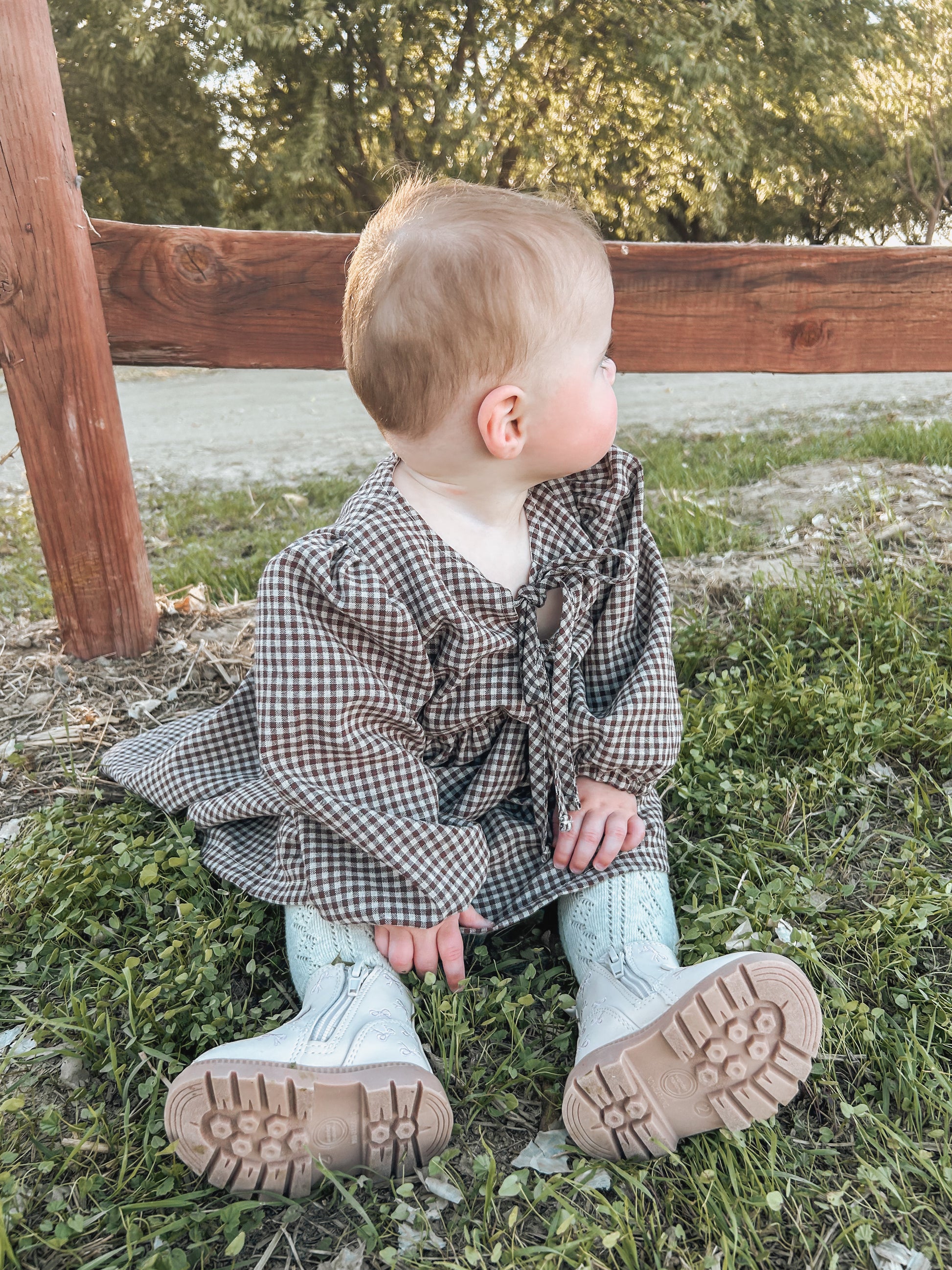 Charming and timeless, the Mabel Dress is a perfect blend of classic style and playful details. Crafted in a rich dark brown gingham, it features sweet bubble sleeves and a delicate lace-up front that adds a touch of vintage flair. Soft and comfortable, this dress is made for twirling through sunny days, family gatherings, or cozy moments at home.