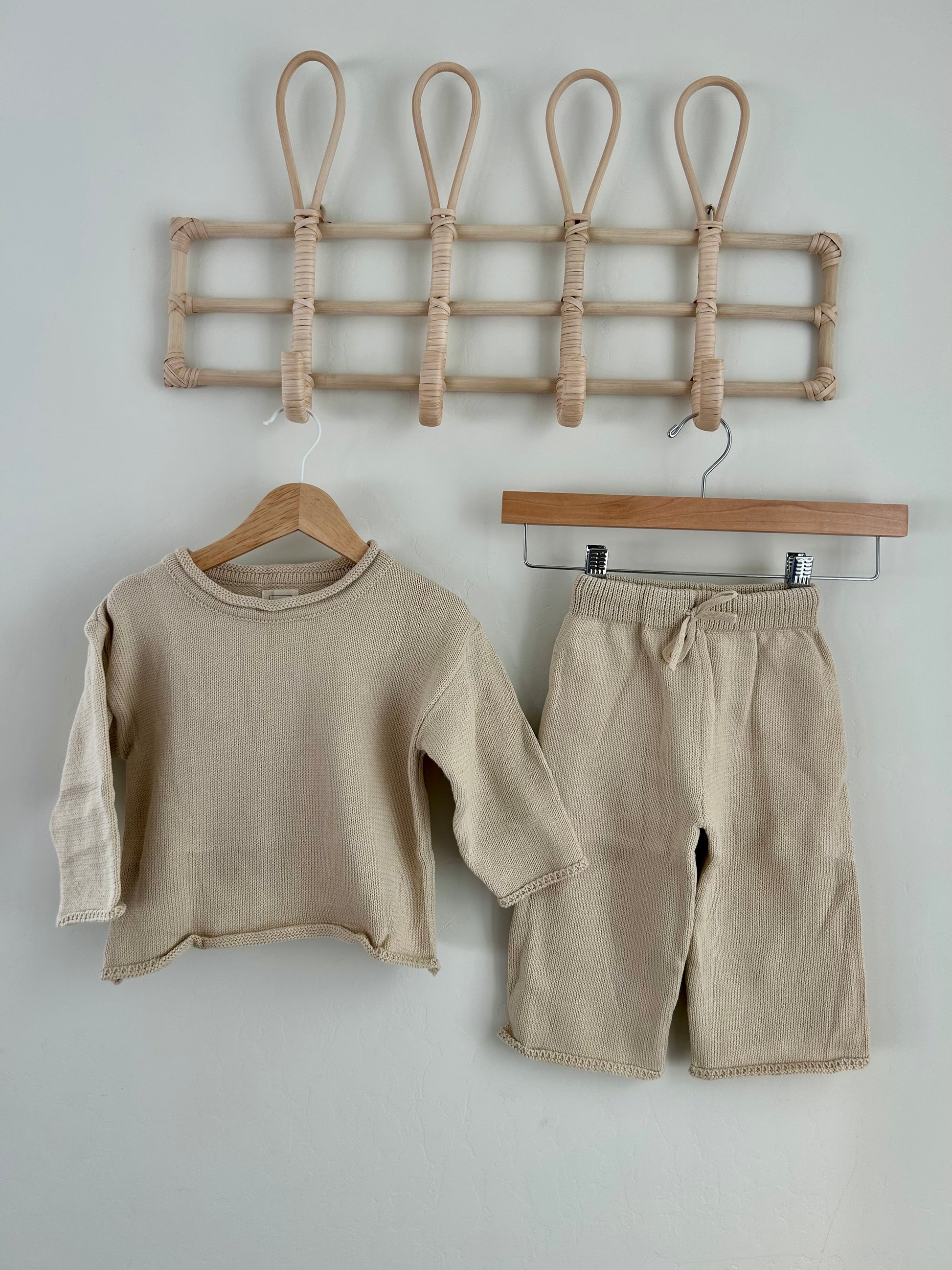 Soft, cozy, and effortlessly stylish, the Willow Knit Set wraps your little one in gentle warmth and timeless charm. Crafted from breathable, textured knit fabric, this set features raw hems and a relaxed rolled-hem neckline for a subtly undone, modern look. The comfortable loose flare pants offer plenty of room to move and play, making this set perfect for everything from cozy days at home to casual outings.