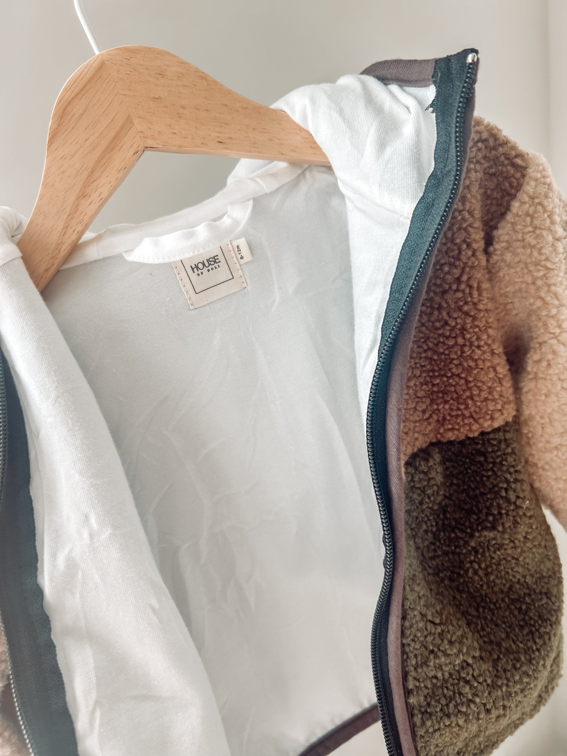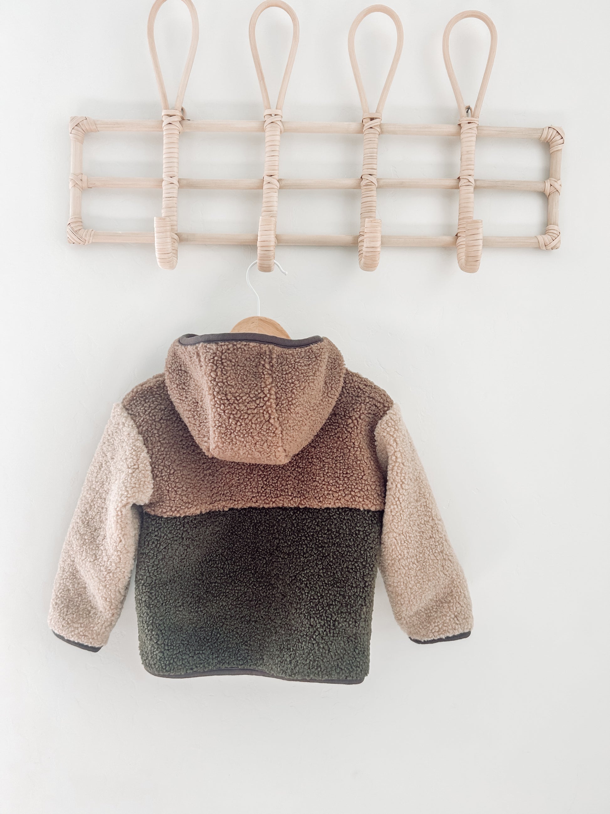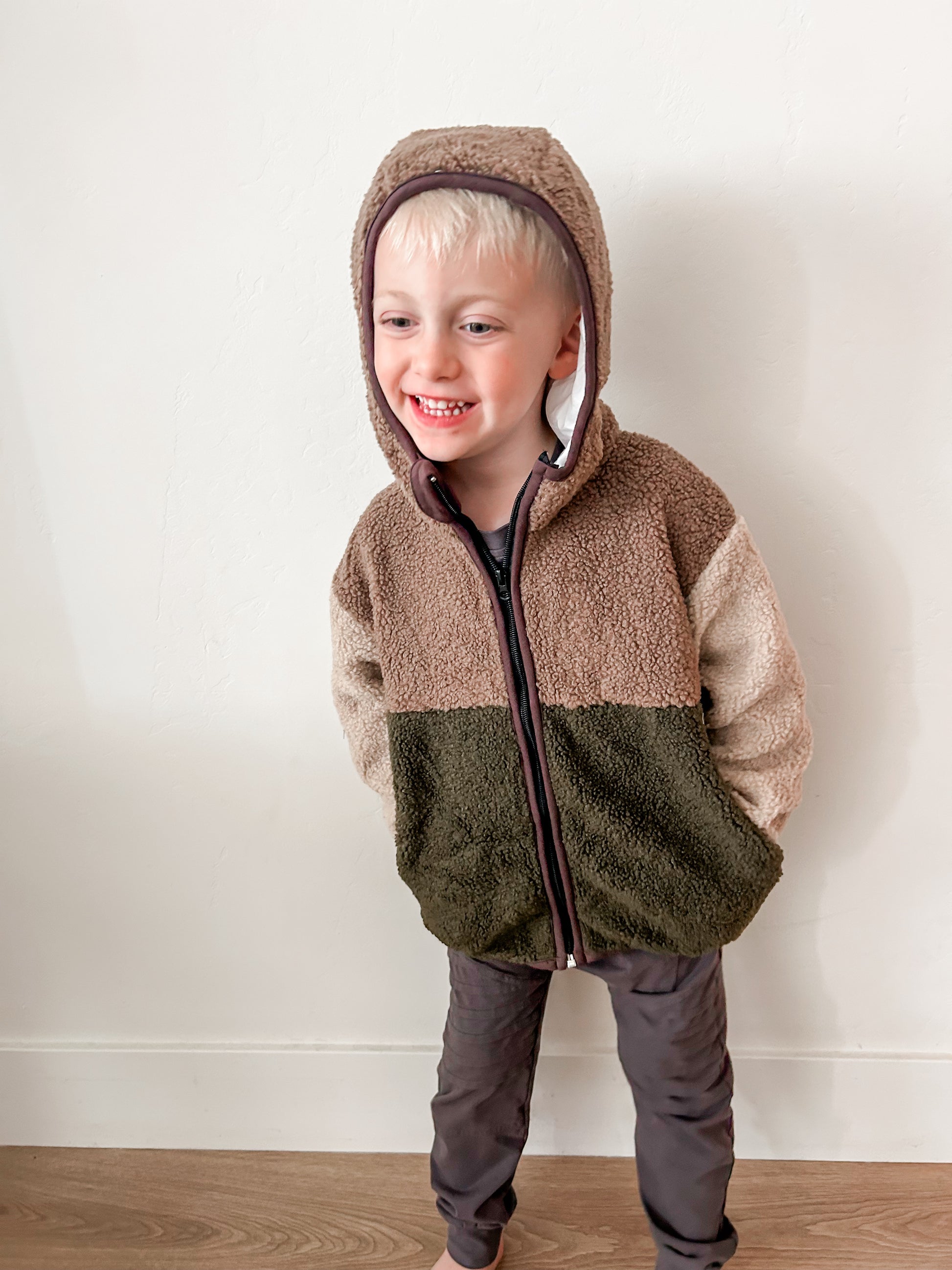 Snuggly, soft, and made for every adventure, the Trail Jacket is the ultimate cozy layer. Featuring a zip-up front, roomy pockets, and a warm hood, it’s crafted with a plush teddy exterior and a knitted cotton lining for extra comfort. Perfect for chilly mornings and sunset strolls, this jacket keeps little ones wrapped in warmth while looking effortlessly adorable.
