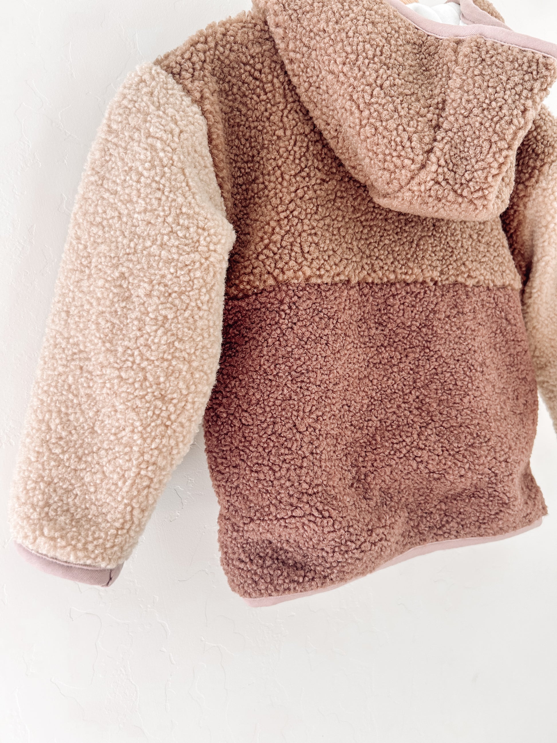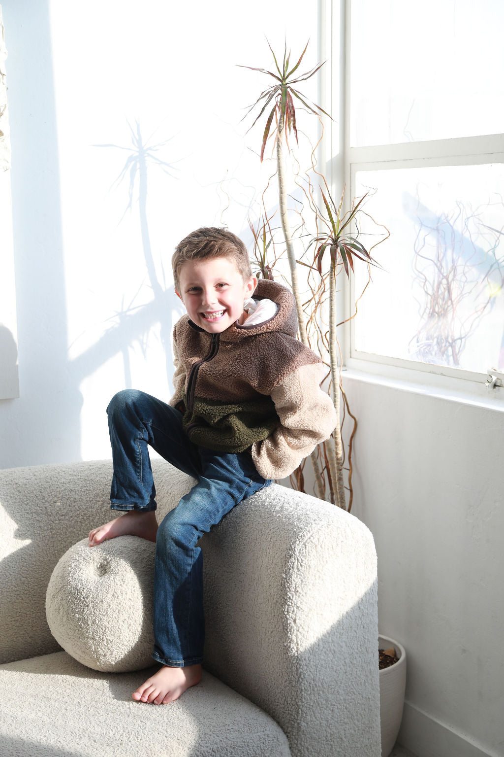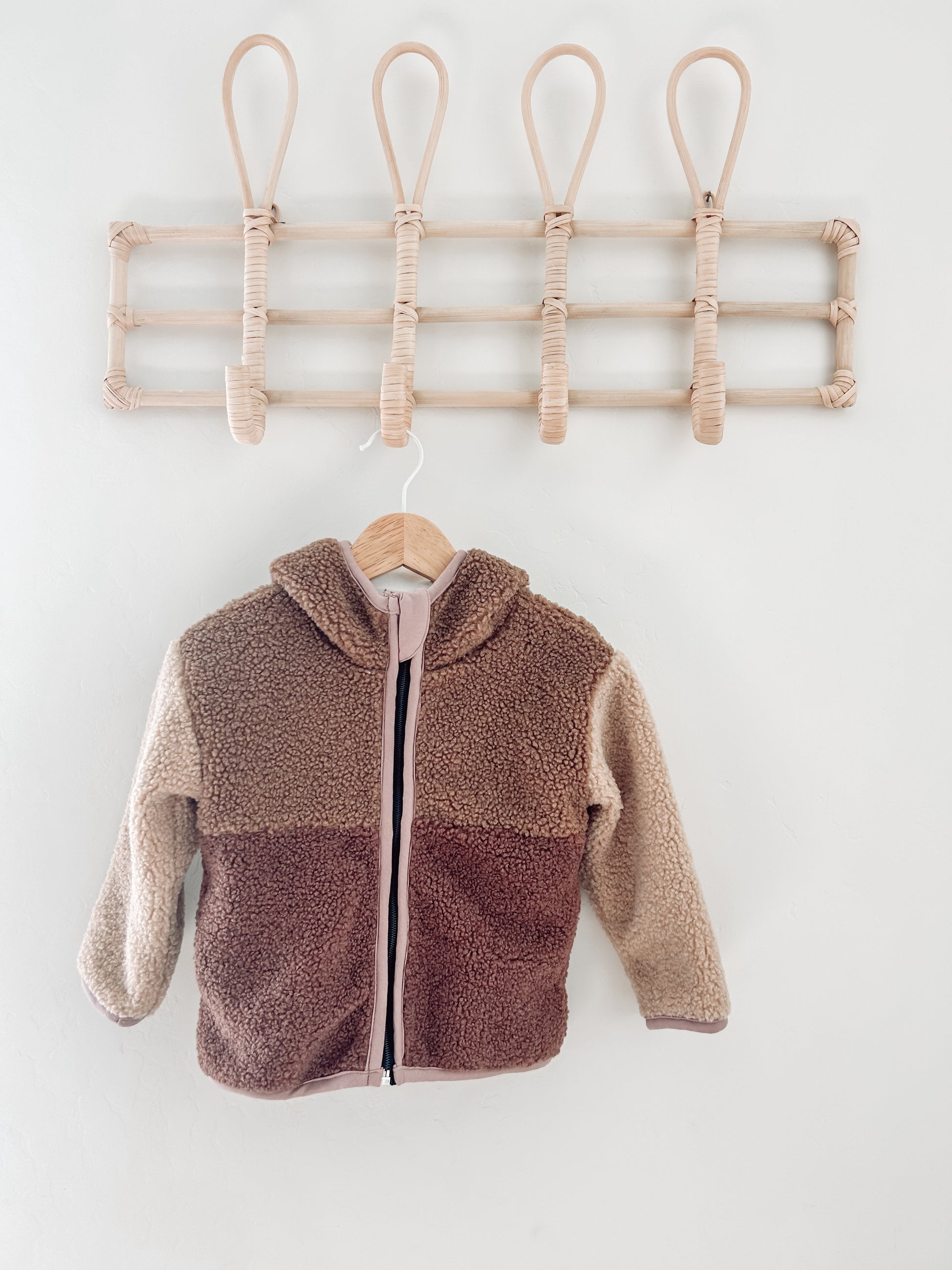 Snuggly, soft, and made for every adventure, the Trail Jacket is the ultimate cozy layer. Featuring a zip-up front, roomy pockets, and a warm hood, it’s crafted with a plush teddy exterior and a knitted cotton lining for extra comfort. Perfect for chilly mornings and sunset strolls, this jacket keeps little ones wrapped in warmth while looking effortlessly adorable.